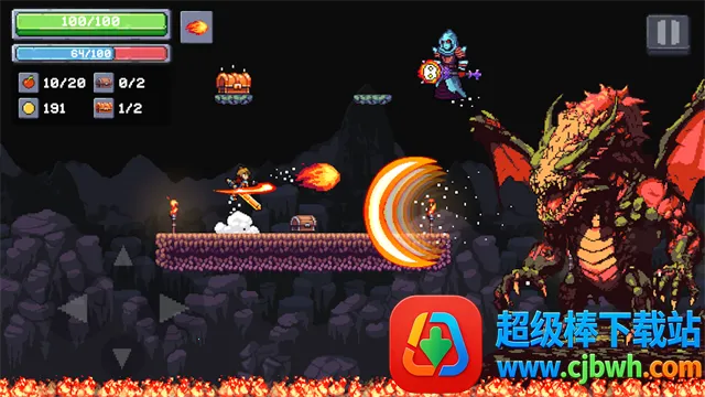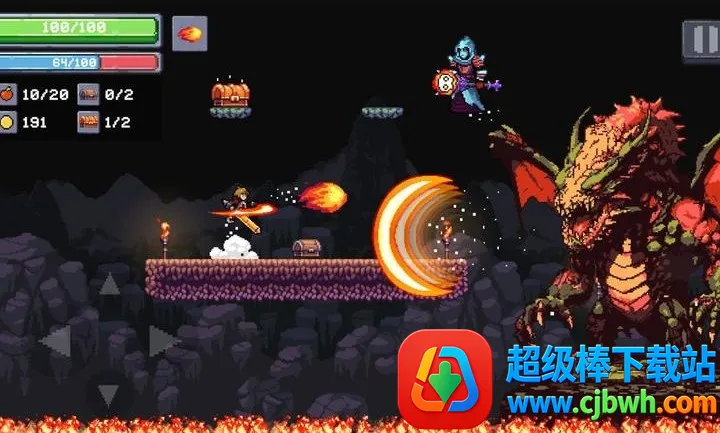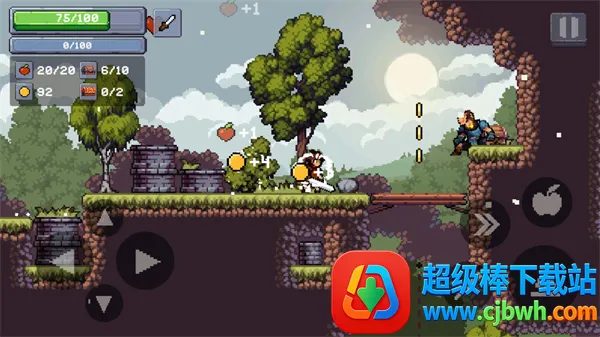 游戏操作简单,左边控制角色移动,右边进行攻击、冲刺、跳跃和投掷苹果等操作。