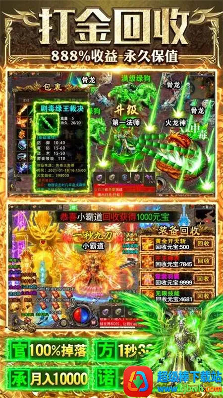 特色的装备系统,装备元宝全靠打,还有多种神器不断更新,如绿毒屠龙、寒冰骨玉、逍遥魅扇等。