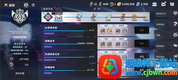 有GVG公会战,通过进攻敌方建筑获取分数决定胜负,战斗达到一定回合数可选择平手,平手奖励比战败略好。还有丰富剧情关卡、副本,完成任务推进剧情深入了解角色。团员商店、团长商店可兑换资源,佣兵团有各种玩法和要求。
