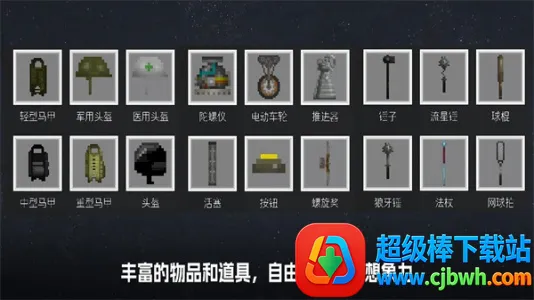 1. 丰富道具随心用:游戏提供多达十种不同道具,武器载具或其他特效等,玩家能随心所欲使用和创造。