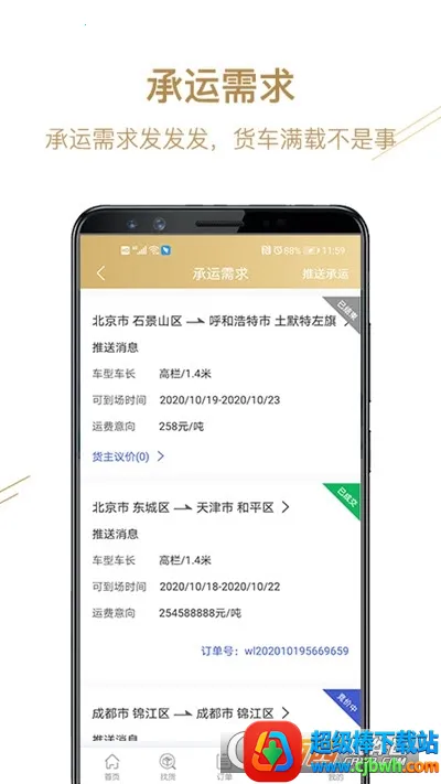 2、订单管理:司机可管理已接订单,查看详情、目的地等;货主能管理自己发布的订单,了解订单状态、接单司机及运输费用等信息。