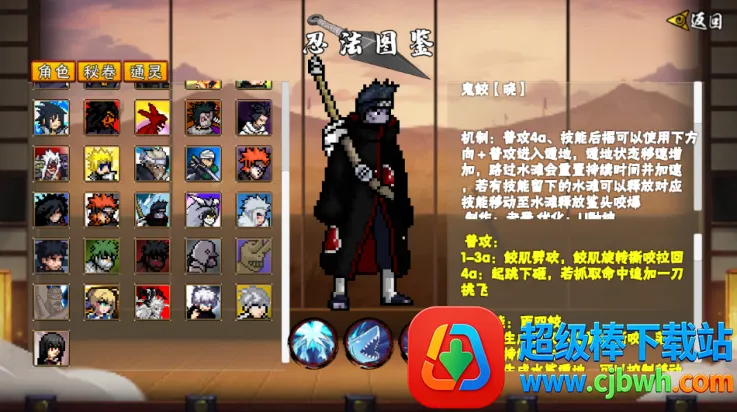 像素火影次世代鬼鲛是B站UP主u鼬神做的动作格斗游戏,以火影为背景,有经典像素风。可操控喜爱角色体验丰富战斗系统,技能多样,还有多种玩法与超过30位角色,能解锁新人物,带来畅快格斗体验。