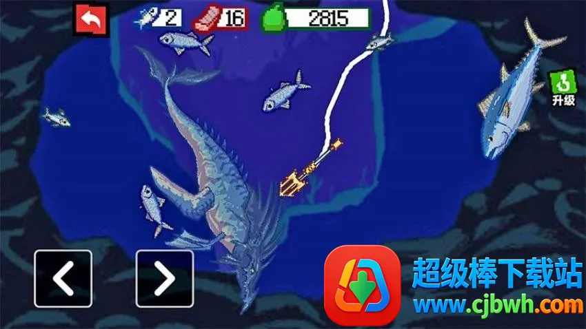 4、海底钓鱼界面,您需要控制鱼钩攻击海底的鱼类,有小鱼,有大鱼,攻击大鱼获取更多收益