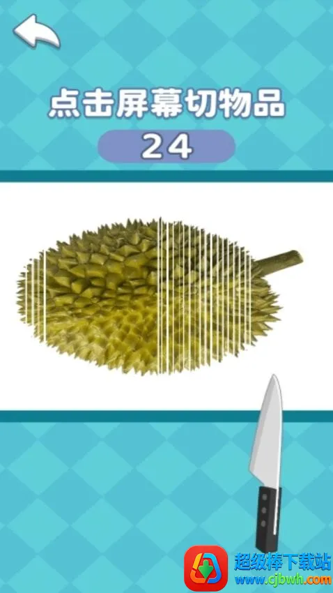 4、切换新的玩法,在游戏界面控制刀具快速切割画面的榴莲