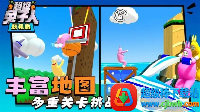 超级兔子人最新手机版是休闲益智合作闯关游戏,支持多人联机。玩家控制兔子人合作寻胡萝卜开传送门通关,有多种模式,玩法丰富,含各种无厘头瞬间,还有装扮可解锁,快来体验趣味挑战!