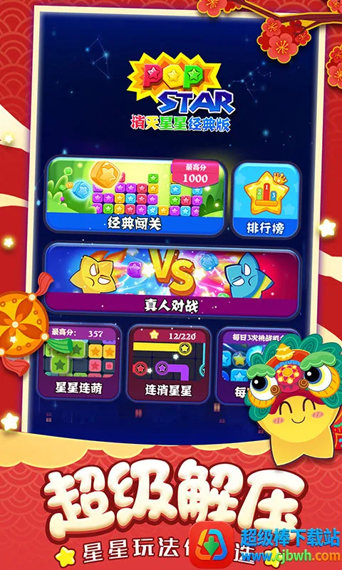 如果你想玩《消灭星星2017》最老版,那可真是选对啦!这游戏玩法超简单,只要点击相邻的同色星星就能消除得分,操作轻松上手,特别适合用来打发时间。它有15种不同模式、120个精心设计的关卡,一旦开始就很难停下。游戏规则简单,找到并消除两个以上相同颜色方块,相连方块越多得分越高。它还有5种玩法,像经典模式没时限,满足目标分数就能过关;时间模式限时60秒,争取拿高分;挑战模式步步关键;冒险模式要努力获3星评级;星星连萌能在垂直和水平方向消除整行方块。游戏画面清新可爱,特效酷炫,音效动感,还有精彩抽奖和道具助你拿高分。而且随时随地都能玩,用实力刷新成绩,解锁更多关卡,快来体验吧!