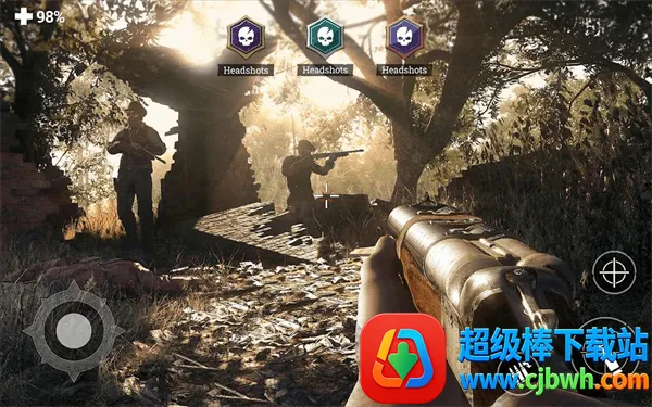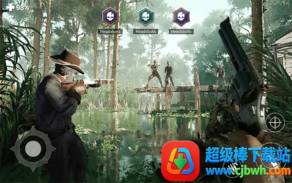 滑动左下角摇杆可灵活移动,利用障碍逐个击破众多僵尸。