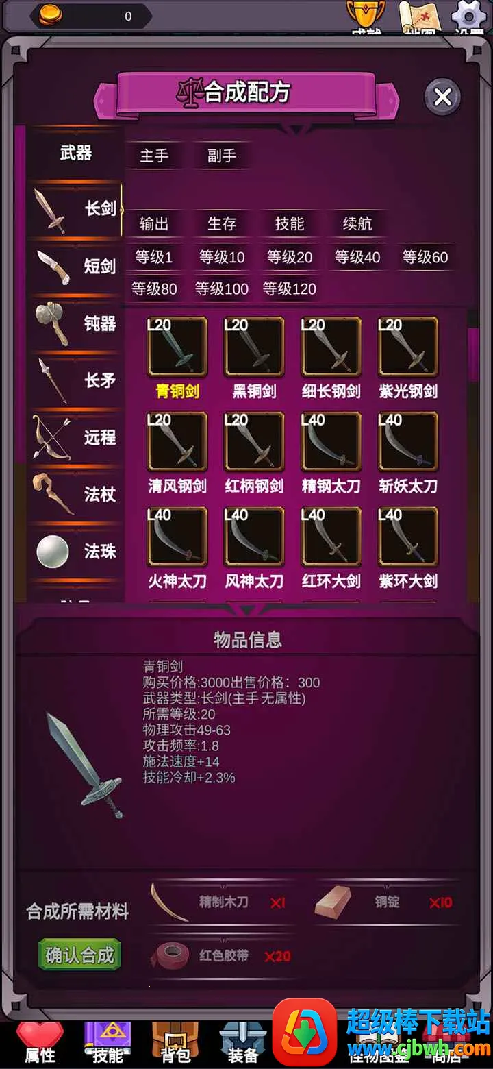 4. 装备玩法:游戏内有多种不同属性装备,可解锁并升级,所有装备均可合成获得,前期还可通过稀有材料附魔提高角色能力。
