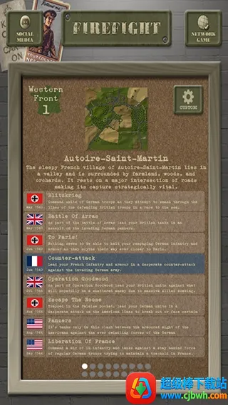 如果你想体验一场紧张刺激的二战战争模拟,那《交战Firefight》绝对值得一玩。它能让你选定国家开启战争模拟,运用战术争夺胜利。支持实时对战,你得依地形与敌情制定计划部署军队。游戏里士兵信息透明,还有智能行为设定,缺弹药会求补给受伤会唤医疗。采用俯视视角,地图全貌一目了然,方便规划战术路线。
