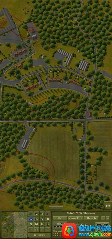 3、由图可见,这种情况非常危险。我方的余回部队被发现,但由于处于丛林复杂环境没有被交叉火力压制,我决定让他强行进攻,并派遣m5a1进行支援,地图最左端的机械步兵则进行大于回穿插,机械步兵团的位置被遮蔽物环绕,不用担心遭到火力打击。