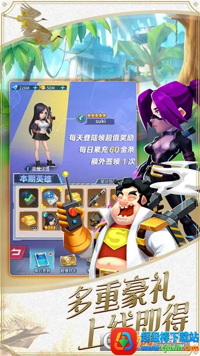 2. 丰富福利不断,签到送充值券、核心UR卡牌,日常活跃送千元代金券。