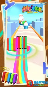 3. 操作简单,控制水彩笔躲开障碍冲向终点,为公主裙摆涂色赢积分。
