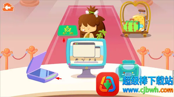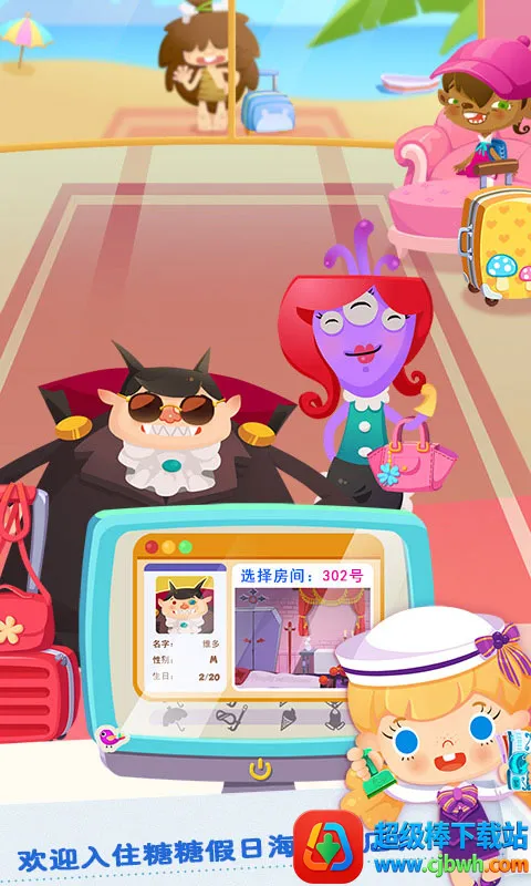 1、打开游戏,和糖糖一起来到海滨酒店,首先到酒店前台办理入住;