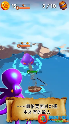 3. 海盗船升级与选择:击败敌人掉落的木桶可解锁新场景或兑换金币,在船坞消耗金币升级海盗船。游戏还有多种不同类型海盗船供你选择,满足不同战术需求。
