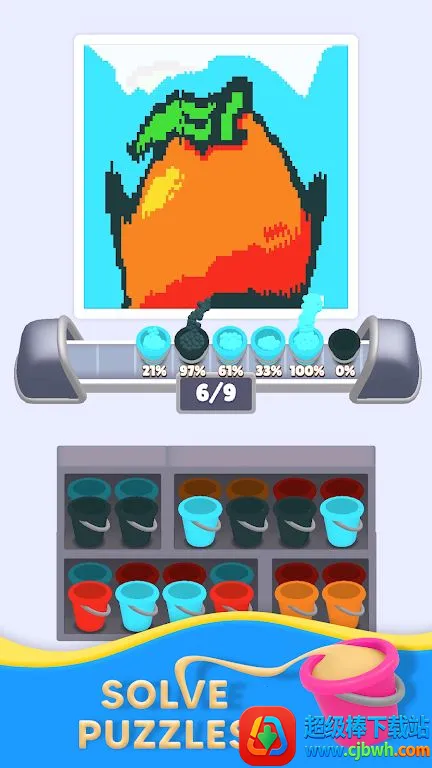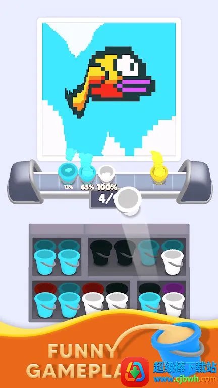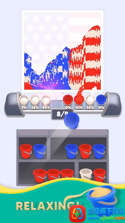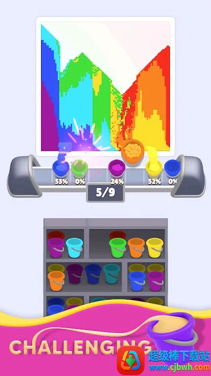 1. 轻松益智玩法:选择正确桶收集匹配沙子完成沙画,每关都是新谜题,无时间压力,按节奏游玩。