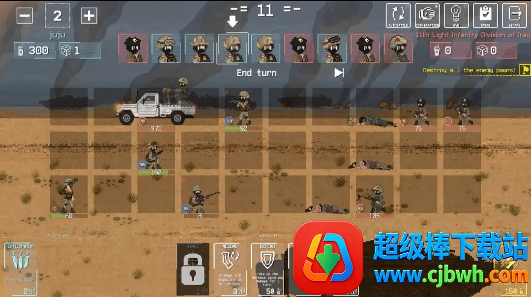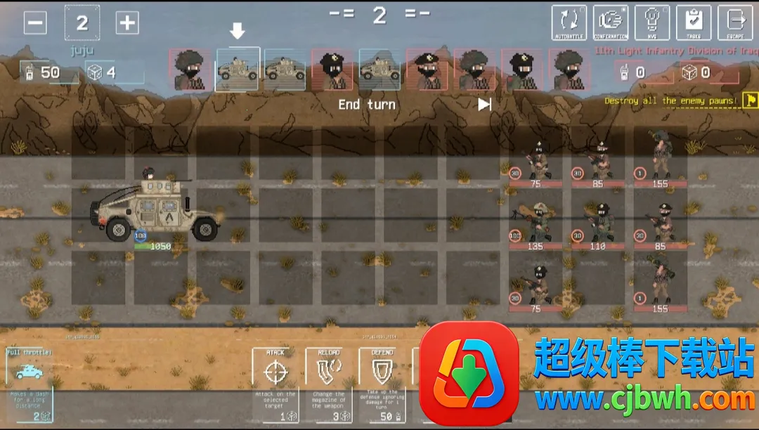 1. 置身未来战争漩涡,在中立领土守卫基地,战斗场景以3x3单元格呈现,需合理排布小队成员发挥战术优势。