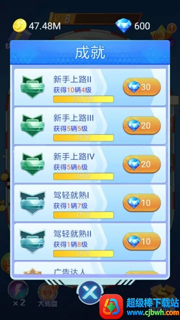 4、根据不同比赛模式选择合适赛道与赛车,比赛中争取更高名次和分数,还能通过完成任务、比赛及升级获取金币和经验值,用于购买更好赛车和升级能力。