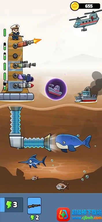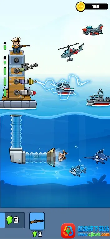 4. 升级系统:在海洋中前进可解锁新武器,强化防御塔,有海量升级选项,让前哨站成为海上堡垒。