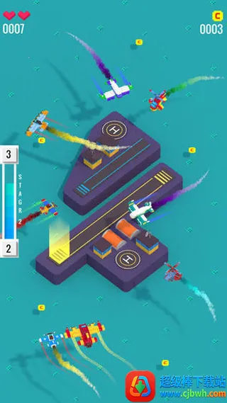 1. 化身飞机救援队,引导大小飞机准确降落机场,不同飞机对应不同跑道,随着关卡推进,引导数量增多,快速归位可获金币奖励并通关。