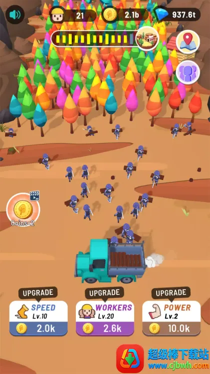 拥有多样化林地,解锁松木林、橡木林、红杉林等,每种林地有独特木材资源,工人自动收获,离线也能持续收益。特定天气或季节会出现稀有木材,收集可兑换特殊奖励。