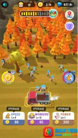 能选择不同季节、不同森林进行伐树,还可升级伐木工提升伐木效率。