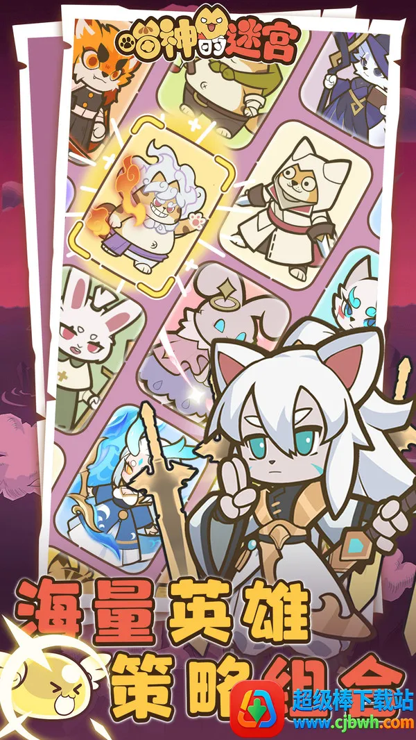 1、丰富的猫咪角色:游戏中有众多风格各异的猫咪英雄,如尼卡喵、东海龙女等,每个都有独特属性与必杀攻击,玩家可自由搭配,打造最强战队。