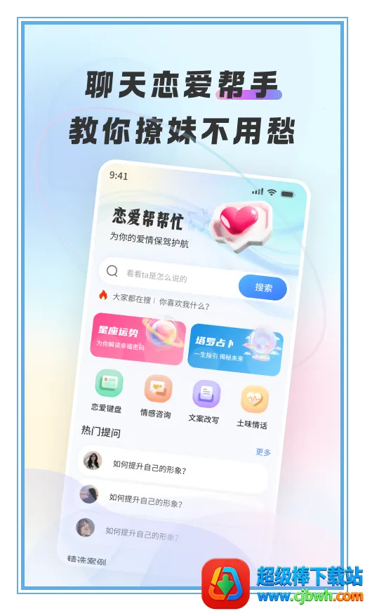 如果你正在为恋爱问题烦恼,或者想要提升恋爱情商,那么这款恋爱帮帮忙软件绝对是你的贴心助手。它汇集了丰富的聊天话术,适用于各种恋爱场景,能让你告别无话可说的尴尬,让每一次互动都充满吸引力与新鲜感。这里还有 24 小时在线的专属恋爱导师,为你的恋爱求学之路答疑解惑。情书代写功能更是一绝,能一秒俘获芳心。案例教程涵盖恋爱心理、聊天技巧、形象提升、星座恋爱观等各个方面,助你真正提高恋爱情商。使用起来也很方便,下载安装后登录即可开始,能快速添加新客户并保存记录,及时跟进需求,还能查看编辑个人资料,通过分享邀请好友一起用。有了它,恋爱不再迷茫,轻松又有趣,赶快下载体验吧!