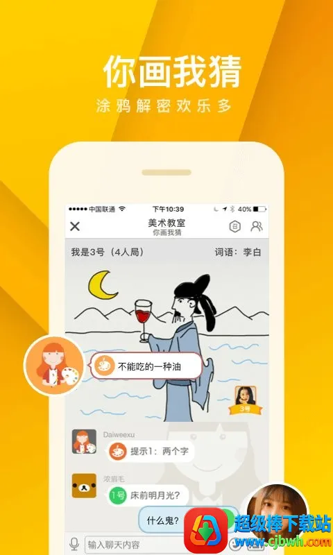 有狼人杀、你画我猜等多种玩法,像个小游戏盒子。随时拿起手机就能玩,无聊聚会时能约朋友在线互动,增进感情。更新后还优化了不少体验,比如私聊发起游戏的体验和一些细节,会员特权里可能还有消息漫游功能哦,赶紧来玩吧!
