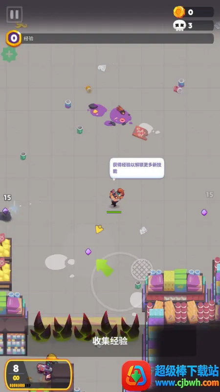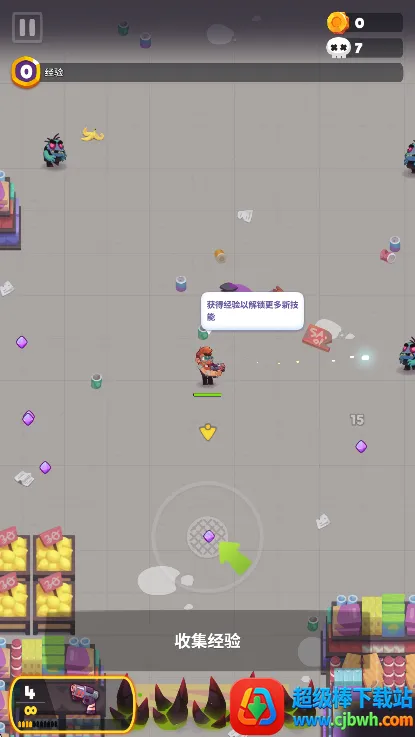 第三步,用找到的武器,杀死僵尸们,收集游戏经验