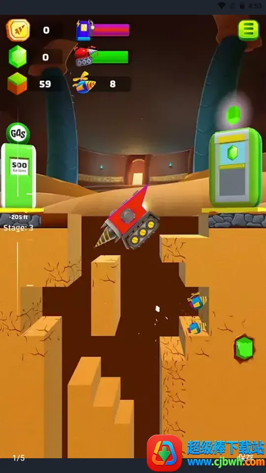玩家可驾驶挖掘机向下挖掘,探索神奇地下世界,挖掘各种宝藏和矿藏,注意躲避岩浆。