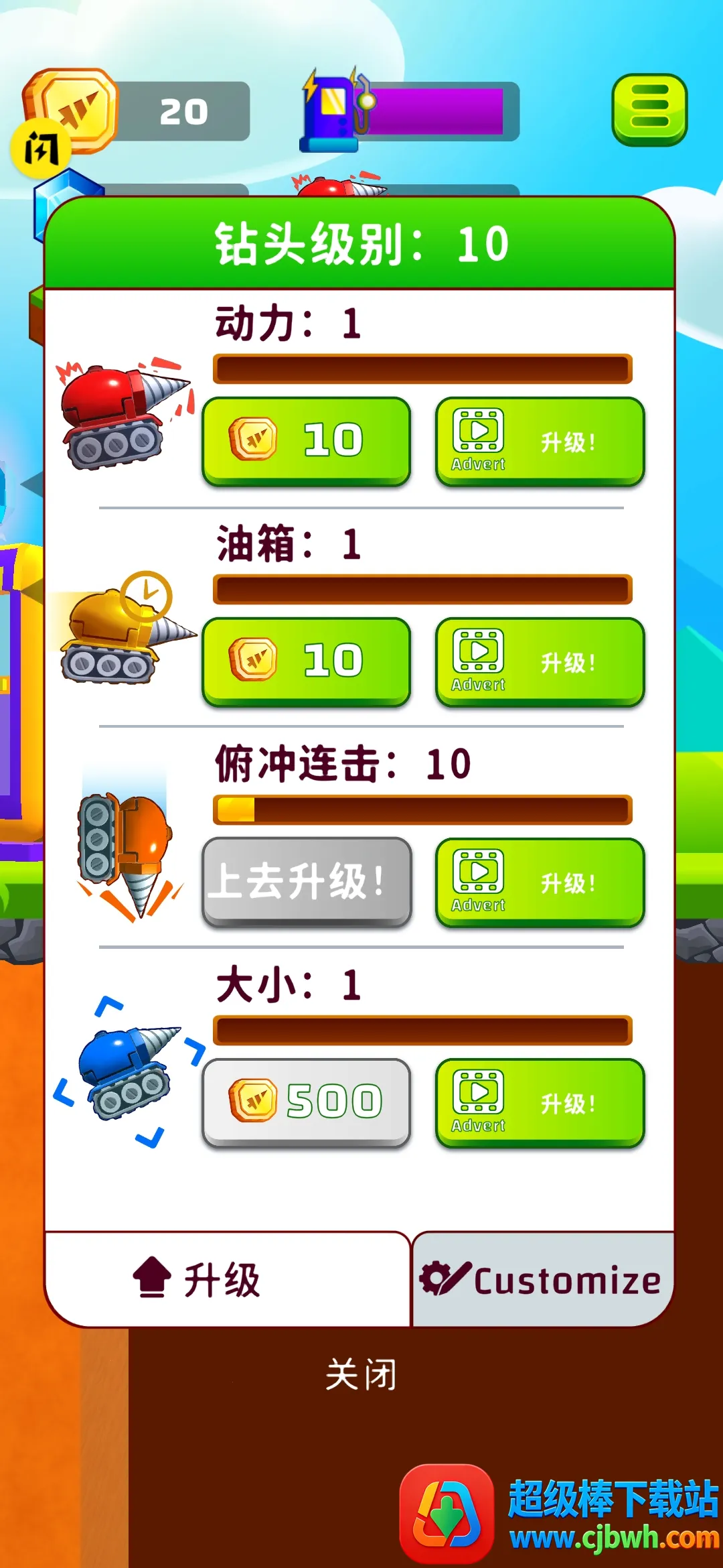 4. 可定制钻孔机外观,购买新皮肤和颜色,还能创建迷你机器人军队,增添冒险乐趣与个性。