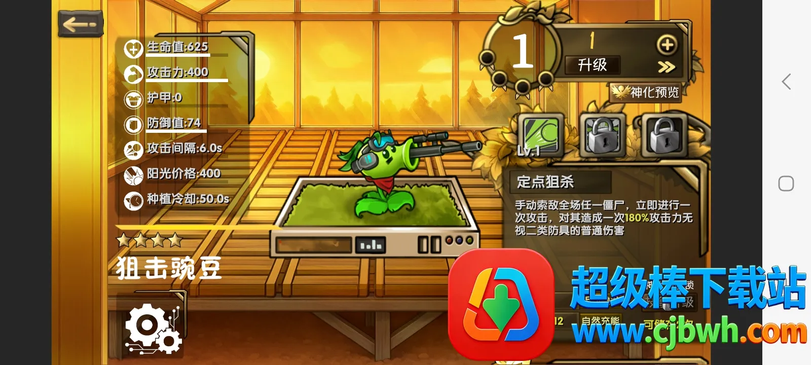 4 植物进化系统独特,豌豆射手、杨桃等双路线进化,升级解锁新技能。