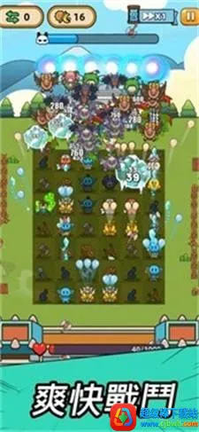 2、深度融合多种玩法:巧妙融合合成、Roguelike与塔防元素,玩家能升级角色、选择技能、合理移动排兵布阵,抵御敌人。