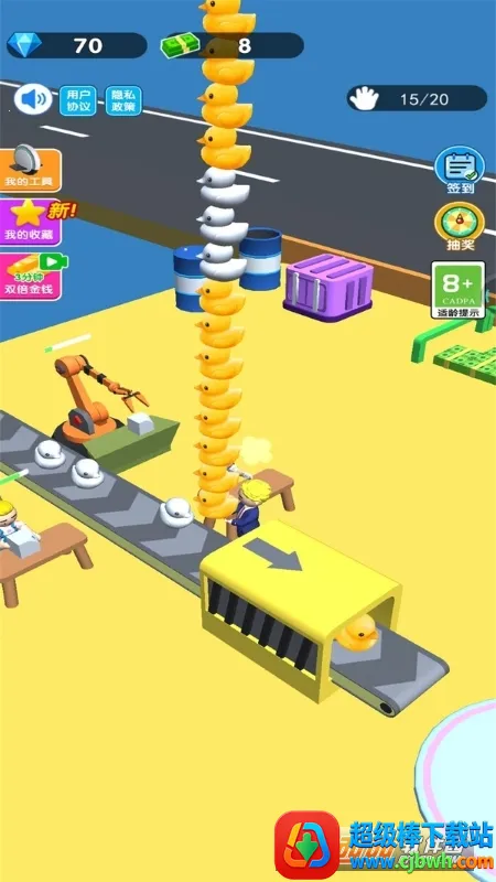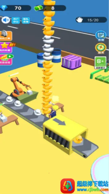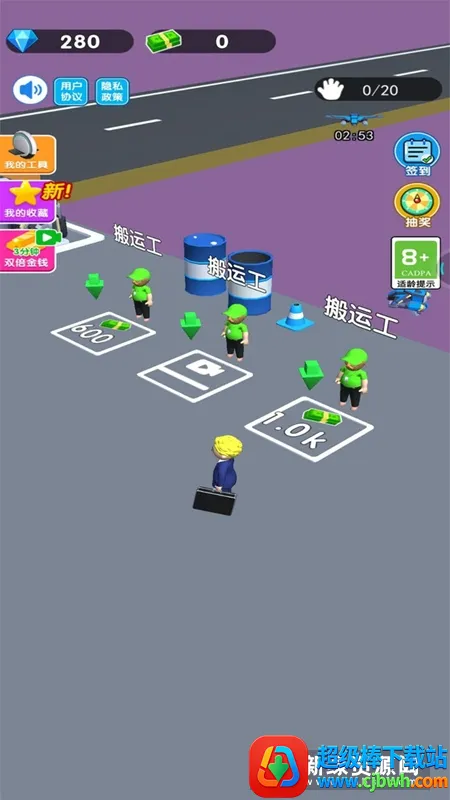 玩家可扮演刚创业的小老板,通过搬运车间生产的玩具赚取第一桶金,进而解锁搬运工人、扩大车间、提升效率,赚取更多金币以解锁不同关卡和车间。