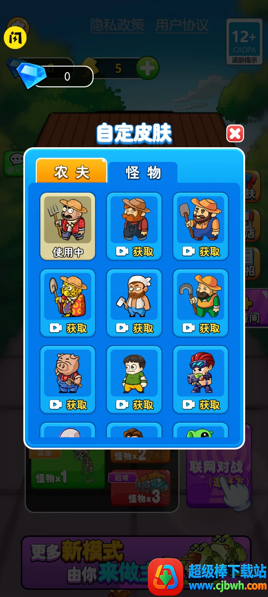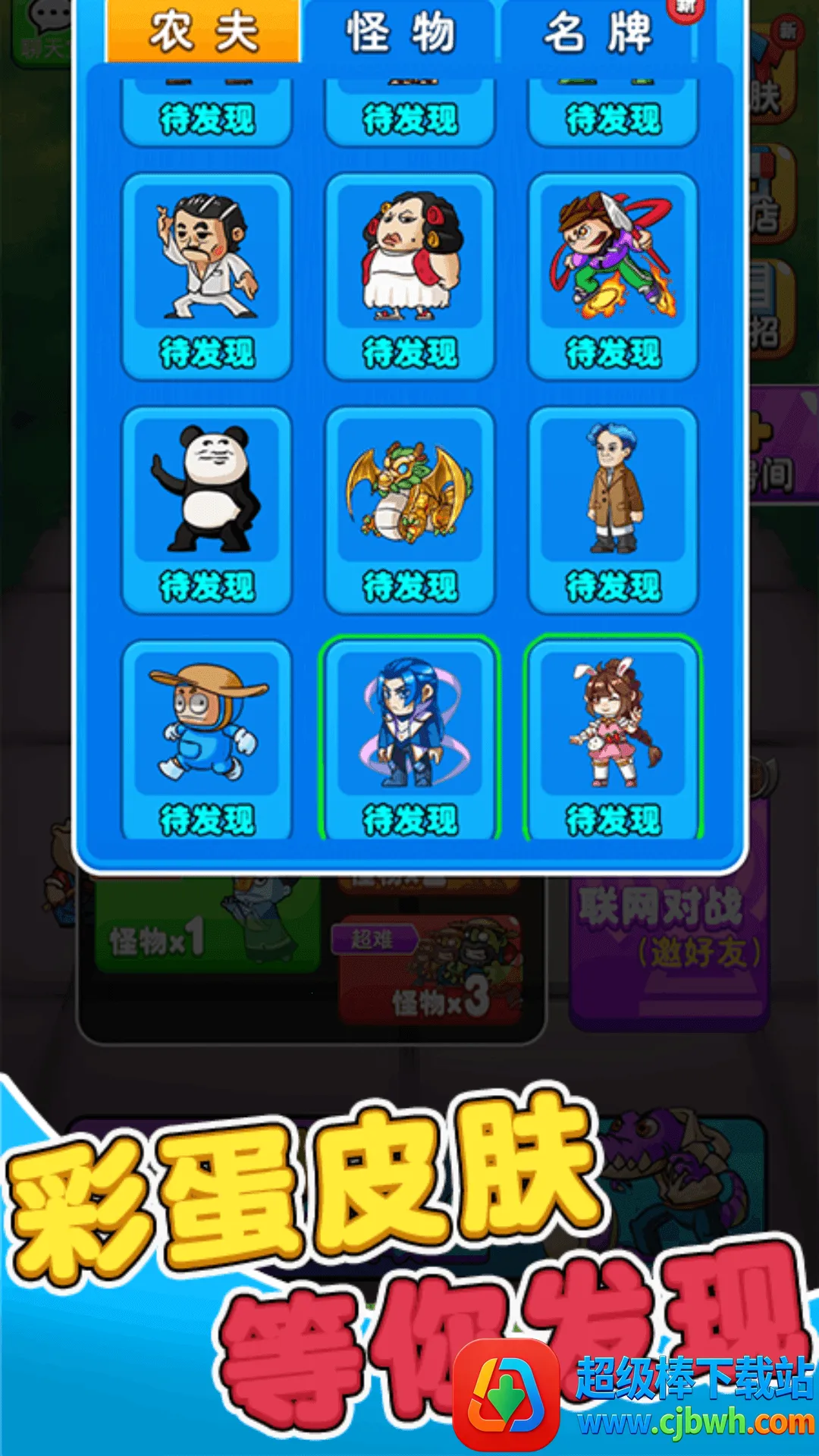 别惹农夫这款游戏超有趣!它是策略塔防类的,玩法类似猛鬼宿舍。在这里,你能体验当农夫种植物抵御僵尸,也能当僵尸去进攻。游戏操作简单,点击屏幕就能玩。它有很多独特玩法,比如能躺着赚金币来升级攻击和开发设备。还有超多隐藏皮肤等你解锁,像通过挠开昆虫蛋、拆除电光草、对特定怪物使用大招等各种方式,能解锁阿衫、魔将、隐忍少年等100个隐藏皮肤。这不仅增加了游戏的趣味性和挑战性,还能让你在游戏中有更多新奇体验。你可以自由选择阵营,和好友联机组队打怪。通过升级农田、栅栏、植物,购买道具来抵御僵尸。快来下载,在别惹农夫里体验策略塔防的乐趣,解锁属于你的隐藏皮肤吧!