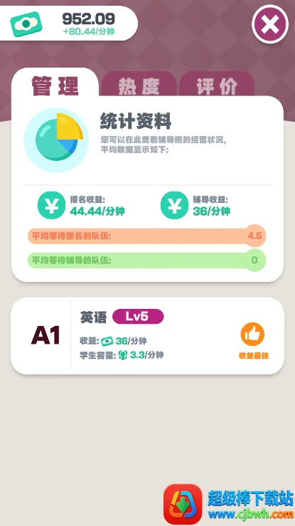 这款模拟经营游戏很有趣。玩家能从经营小培训学校起步,一路发展成世界名校。游戏画面不错,玩法丰富。你要操心招生、请老师、升级设施等诸多事务。因材施教培养学生,提升学校声望,还能扩张校区完善学区。以赚金为基础,更要解锁荣耀打造连锁学校。能自由排课放假,处理突发事件,感受浓郁校园风情,体验经营学校的全过程,带来别样的沉浸式游戏体验,值得一玩。