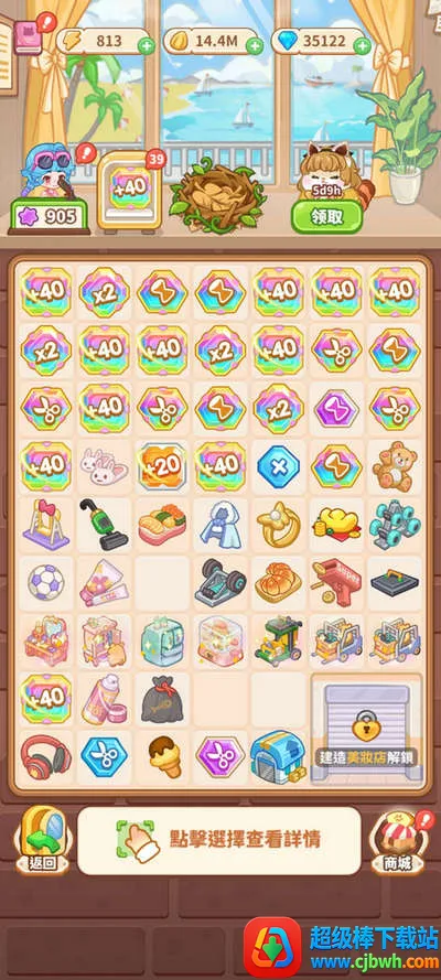 2. 玩法丰富,有经营、消除和合成元素,众多店铺待解锁。