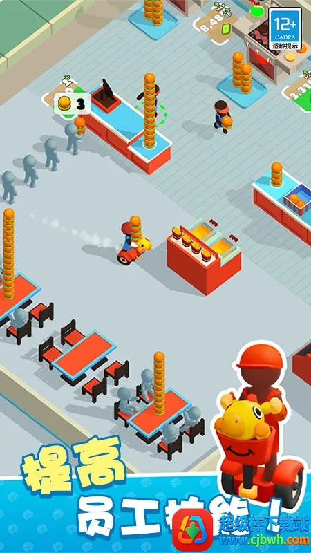 这款模拟经营游戏超有趣!整体画风简洁明快,色彩清新,火柴人角色可爱,建筑简约,视觉体验超舒适。开局用初始资金打造汉堡小店,从选址到扩张,体验完整创业路。有两种点餐模式,要合理安排员工分工。特色是循序渐进开店、员工能力可升级、支持多阶段扩张。玩法丰富,从获取资金到建造店铺、升级设施等。亮点是多种主题背景、解锁快餐工艺、提升运营效率实现蜕变。适合休闲时玩,快来下载开启经营之旅,打造自己的餐饮帝国!