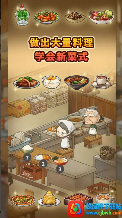 游戏中设置了熟练度机制,随着老爷爷料理烹制次数的积累会开启新的菜式可供选择,随后还会提升制作餐点的水平,缩短烹调时长,增加单次出品数量。