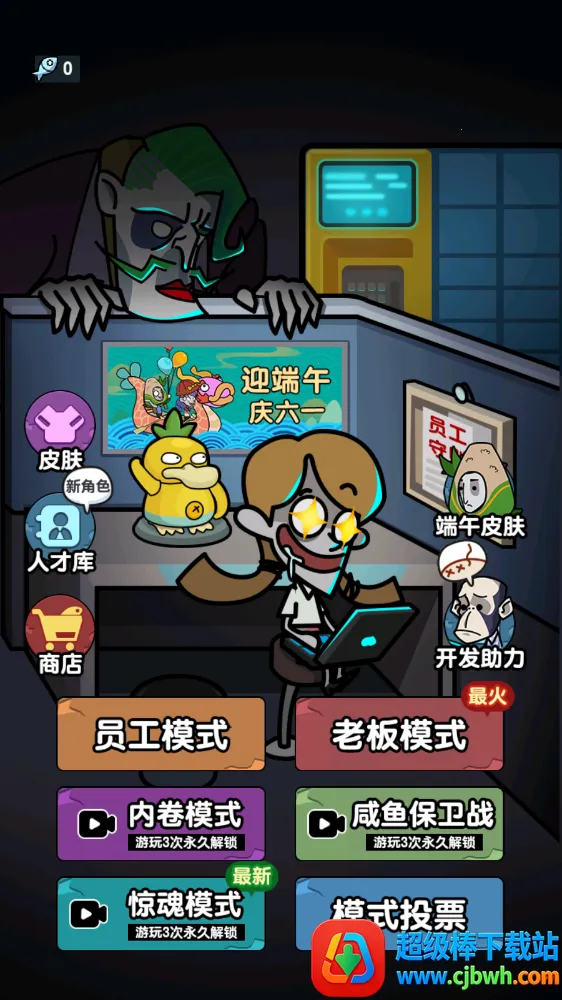 躺平摸鱼之王免广告版是办公室题材塔防游戏。玩家扮演摸鱼员工,躲避老板怒火,摸鱼赚金币建防御设施抵御老板。玩法新颖,画面高清,角色多样,有暗黑风格,道具丰富,能自由搭建防御体系。