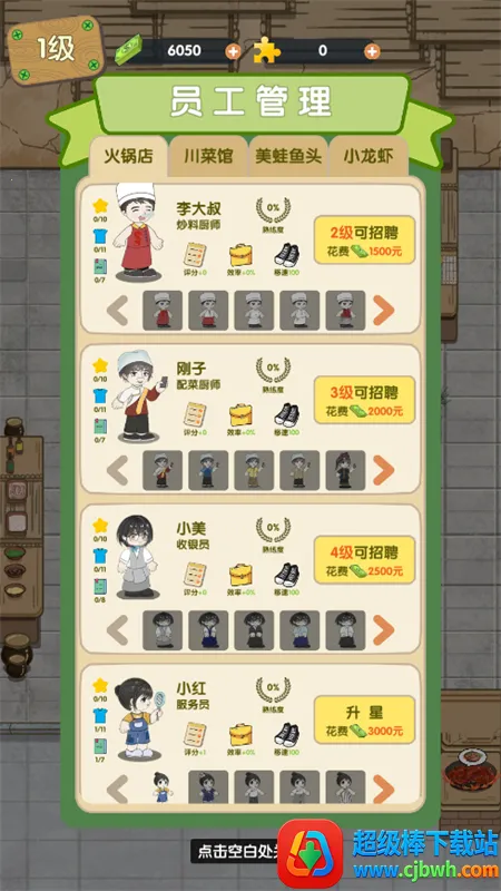 3. 免费解锁员工皮肤:游戏有数百个员工皮肤,均可免费解锁,能按喜好装扮店铺。