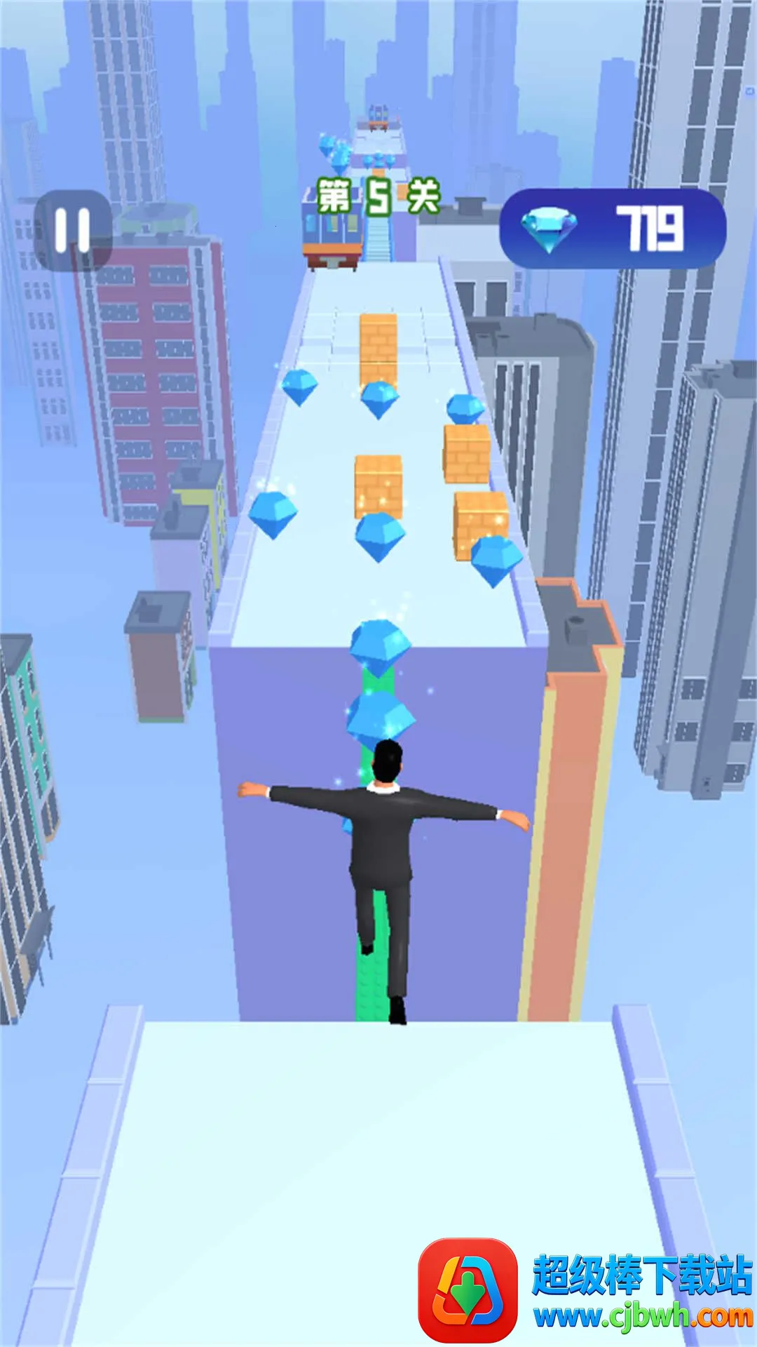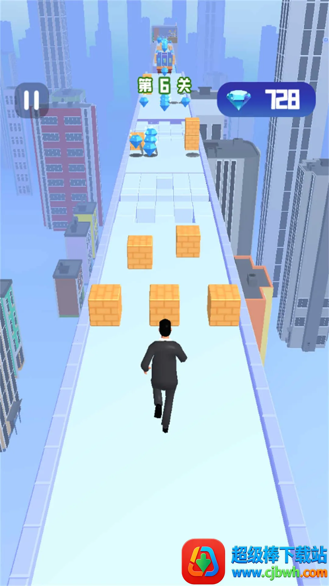 1. 游戏结合跑酷与收集元素,跑酷途中收集砖块。