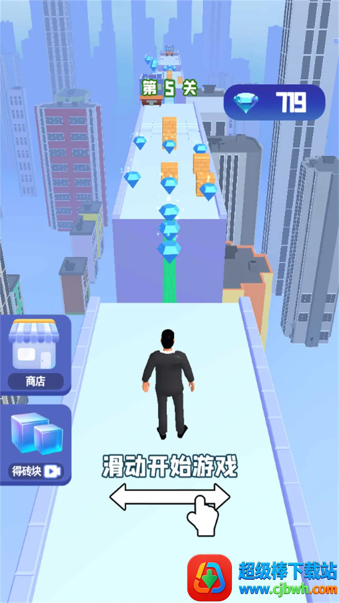通过收集砖块升级角色,提升跑酷能力,不断冒险。