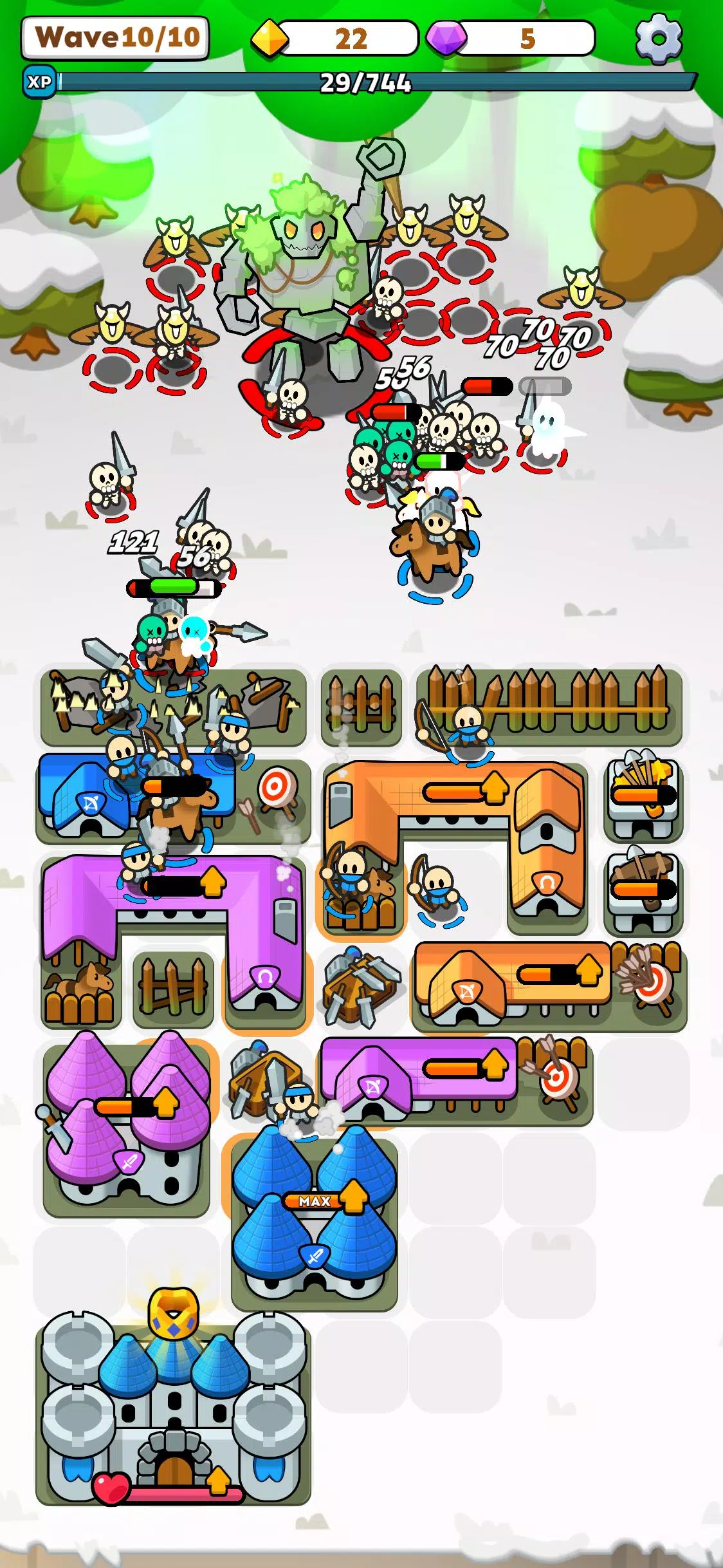 1、合并升级:玩家可组合不同类型建筑,创造强大建筑增强防御。比如将两个相同建筑合为更强大的,提升抵御敌人的能力。