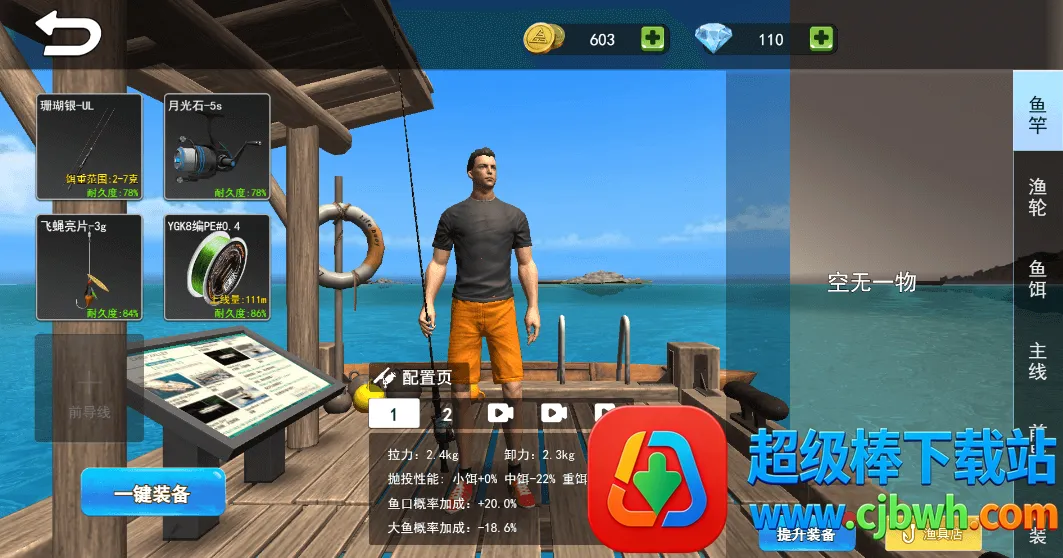 操作简单易上手,有不同装备供玩家自由使用尝试,可体验沉浸感十足的钓鱼挑战,还能参与玩家之间的pvp排行榜。