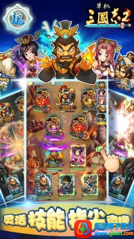 2. 武将养成:能自由选择武将进化与升品,利用道具提升能力,还可从关卡获取掉落道具收集进化材料。