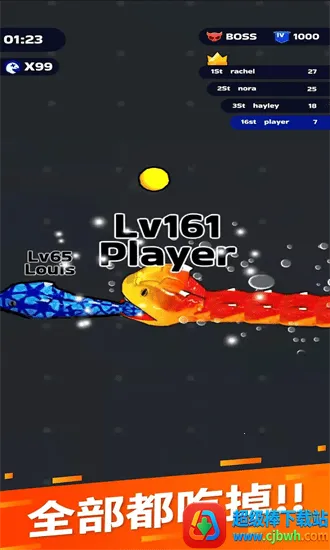 1. 吞噬成长机制:操控蛇吞噬等级低的其他蛇,在战场中成长,吞噬越多排名越靠前。