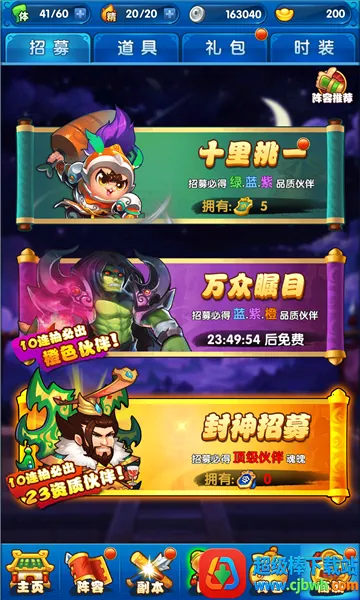 这里有奇葩技能,比如刘备输出靠阿斗,张飞临阵卖猪肉等,人设贱萌,剧情无节操。游戏福利超多,王母蟠桃宴送体力,玉帝亲自迎财神,在线奖励领宝箱,开服狂欢送橙将,成长计划领全民福利,每日任务额外奖励多。商城银币包元宝购买很划算,每日任务、副本挑战、群仙屠龙、乾坤炉炼化等都是获取银币的途径。还有多种玩法,像副本、好友副本、活动副本、竞技场、擂台等,能满足你的不同需求,带来多样乐趣,快来体验吧!