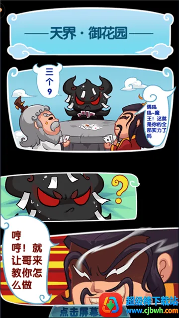 这款游戏以独特的无厘头风格脱颖而出。剧情结合神话故事,人设奇葩,技能鬼畜,如刘备靠阿斗输出,猫耳孟婆煲靓汤等,让人忍俊不禁。游戏玩法丰富,融合角色扮演、卡牌收集等多种元素,首创玩法新颖。福利满满,王母蟠桃宴送体力,玉帝迎财神送元宝,在线奖励丰厚。战斗中角色技能多样,普通与合计技能搭配,概率触发,策略性强。画风萌系卡通,场景人物绘制精美。无论是喜欢恶搞风还是卡牌游戏的玩家,都能在其中找到乐趣,体验一场别样的神话大乱斗。