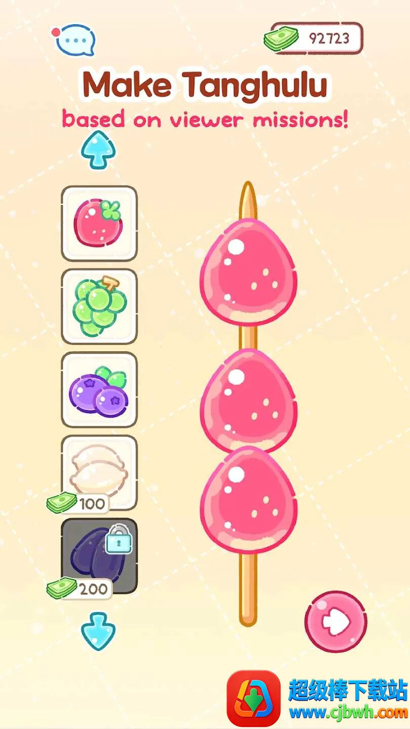 想成为糖葫芦制作达人吗?那就来试试这款游戏吧!在《糖葫芦达人》里,你将化身主角露露,继承父母的糖葫芦店面。这里操作超简单,点击屏幕就能轻松制作糖葫芦。游戏玩法丰富,仅用水果可难以在吃播界立足,你得利用松饼、地球软糖、青阳辣椒等奇特材料,打造特色糖葫芦。你还能制定销售策略,提高收益与竞争力,升级店铺。不仅如此,游戏内关卡丰富,有多种口味糖葫芦供你选择,满足不同顾客需求,还有多个道具助你一臂之力。另外,你还能在游戏里体验点外卖的乐趣,点击屏幕上的Delivery进入外卖点餐界面,选中食物加入购物车,点击Order,等外卖送达后点击桌面包裹就能开吃啦。快来下载,开启你的糖葫芦达人之旅,感受制作传统小吃的魅力与乐趣吧!